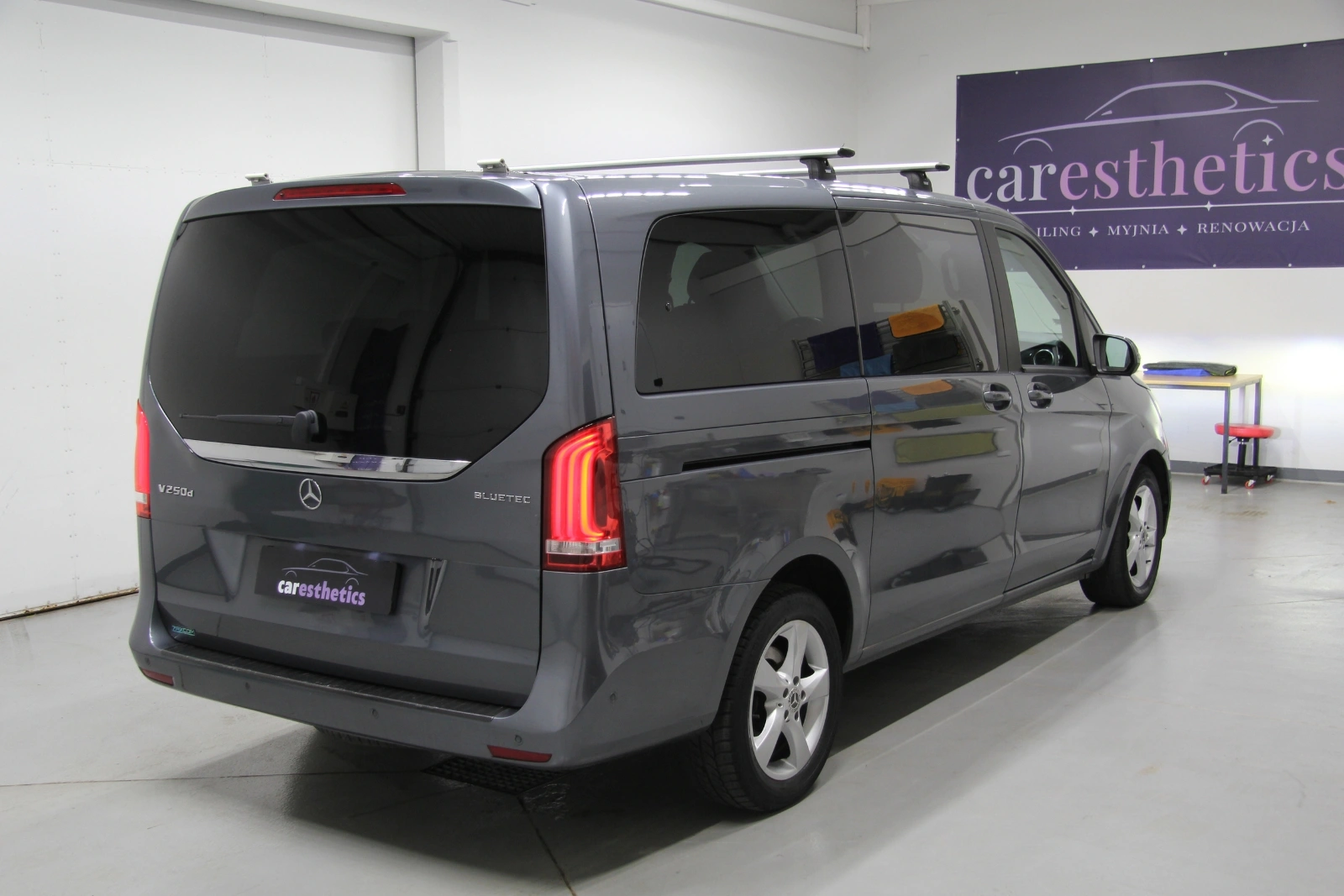 3-etapowa korekta lakieru, detailing wnętrza, ceramika oraz impregnacja dachu materiałowego.